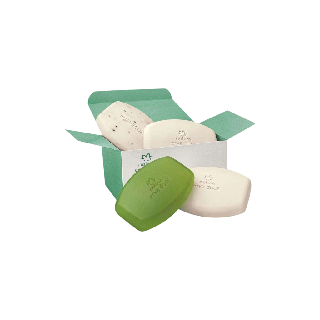 Há 30 anos você confia de olhos fechados na limpeza e na fragrância inconfundível de Erva Doce. A caixa de Sabonetes é ideal para dar de presente em datas especiais ou mesmo para celebrar o dia a dia. A caixa contém 2 sabonetes cremosos, 1 sabonete esfoliante e 1 glicerinado para você desfrutar de banhos muito mais relaxantes.